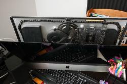 at any rate, i realized i needed to replace the drive but the iMac is quite literally glued together! so i wound up just taping an SSD to the back and plugging it in with a USB adapter and considering that good enough. πŸ˜†