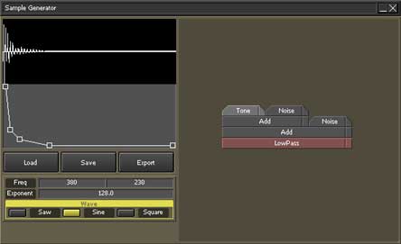 sg is an audio sample generation / synthesis tool. use it to make audio samples for demos and intros or just for fun. sg saves samples to an easy xml format which you can even process with your own tools. this is version 0.1 of sg. since the version is less than 1.0 it means this is a test version. it's not done and may hurt you. like emotionally or something