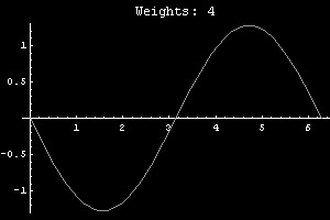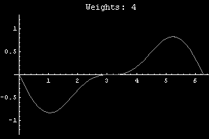Now if we scale the basis functions by the weights and add them together we get our reconstruction of the original function: